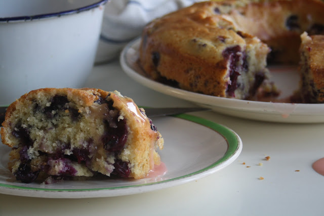 In alternate stages, add a third of the flour (mixed with the baking powder and salt) and then some of the milk, then the flour, the milk etc. Beat for a further 30 seconds - try not to beat the mix too much once the flour is in, just enough to combine, then fold the blueberries through the batter and pour into your bundt tin.